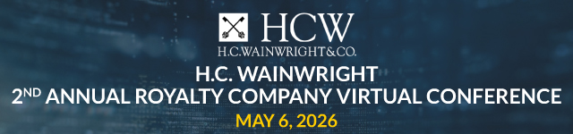 This communication is for informational purposes only. It is not intended as an offer or solicitation for the purchase or sale of any financial instrument or as an official confirmation of any transaction. Since H.C. Wainwright & Co., LLC is not a tax advisor, transactions requiring tax consideration should be reviewed carefully with your tax advisor. All market prices, data and other information are not guaranteed as to completeness or accuracy and are subject to change without notice. H.C. Wainwright & Co., LLC., Member FINRA, SIPC